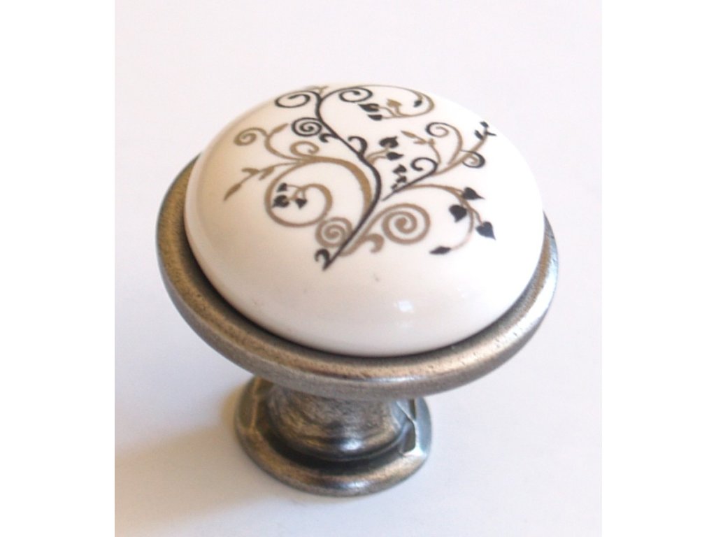 Kulatá porcelánová knopka o průměru 38mm, výšce 28mm, spodní průměr 18mm. Dodává se včetně šroubu M4. Lze kombinovat s porcelánovými úchytkami se stejným motivem.