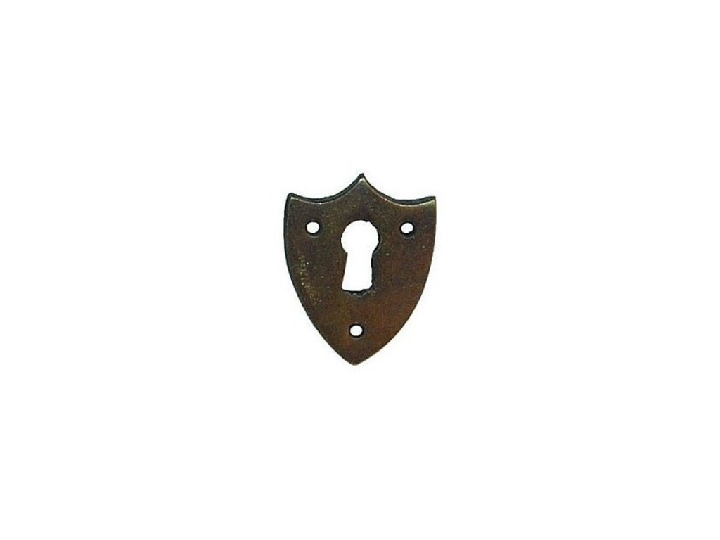 Jedná se o lité mosazné kování. Základní povrchová úprava - mosazná patina. Klíčová dírka je vysoká cca 14mm. Spojovací materiál není součástí výrobku. Po okrajích štítku do dvou malých otvorů doporučujeme použít hřebíčky M7016 (malé otvory).