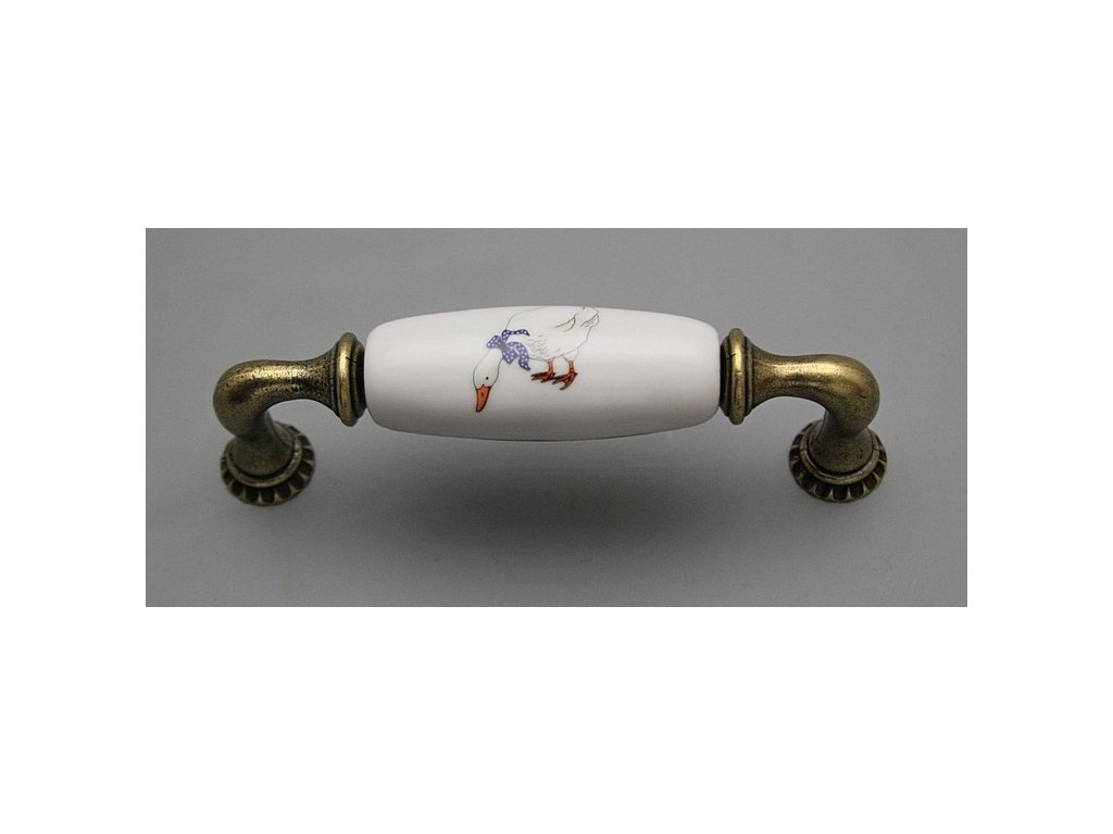 Luxusní úchytka s povrchovou úpravou STAROMĚĎ, kombinovaná s porcelánem v bílé barvě s oblíbeným dekorem hus. Jedná se o velice kvalitní vypalovaný glazovaný porcelán s vysokou životností. Rozteč mezi šrouby je 128mm. Součástí dodávky jsou i dva šrouby s půlkulatou hlavou M4x20-45mm. Též v provedení STAROZLATO či STAROMĚĎ - viz. "Podobné produkty".