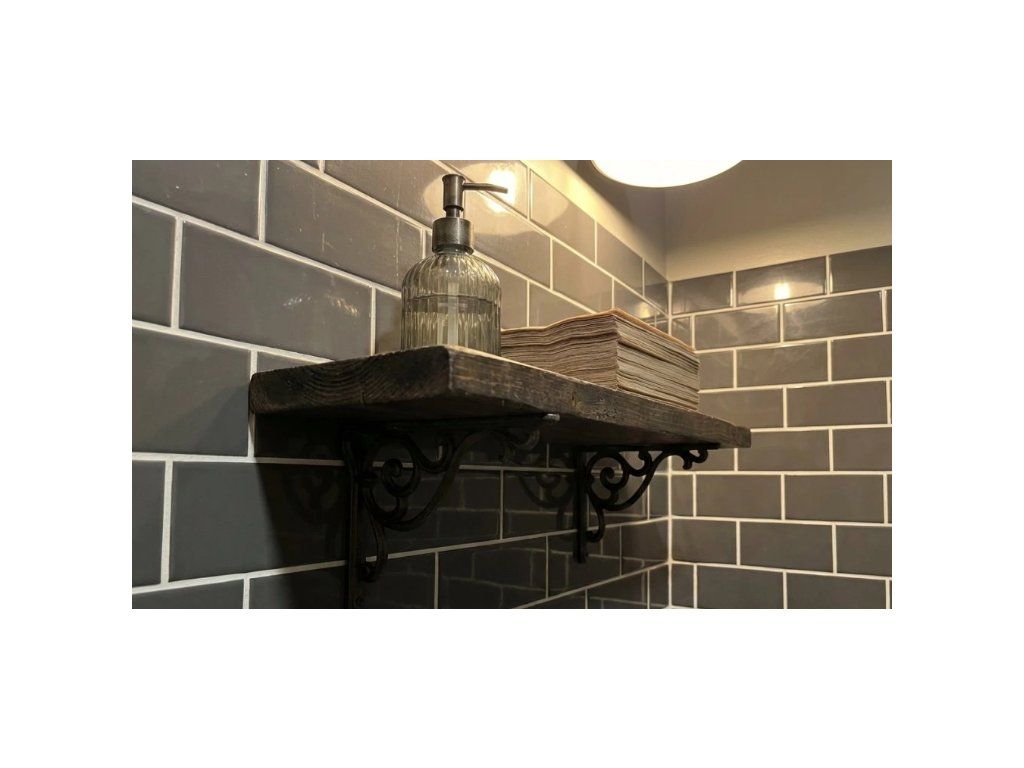Ozdobná kovová závěsná konzole v povrchové úpravě vintage černá. Lze zvolit, zda bude delší strana konzole ukotvená na zeď nebo na ní bude přichycená police. Zatížení je max. 25kg na jednu konzoli. Výrobek neobsahuje šrouby.